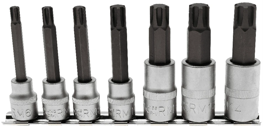 Bit-Einsatz-Satz | 10 mm (3/8″) / 12,5 mm (1/2″) | Keil-Profil (für RIBE) M6 – M14 | 7-tlg.