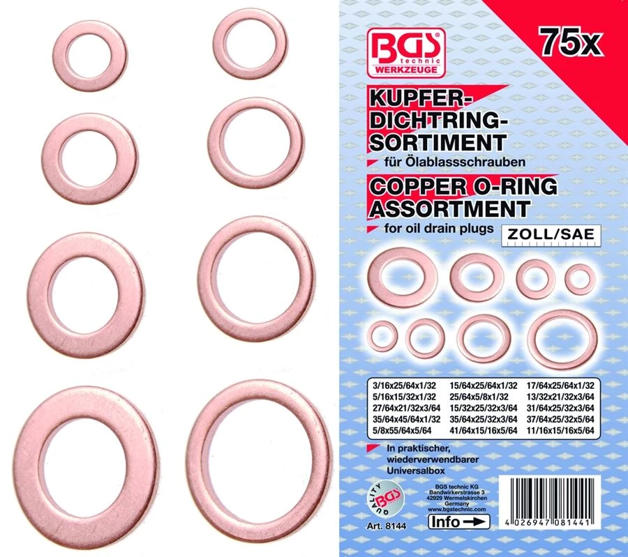 Dichtring-Sortiment | Kupfer | Zollgrößen | für Öl-Ablassschrauben | 75-tlg.