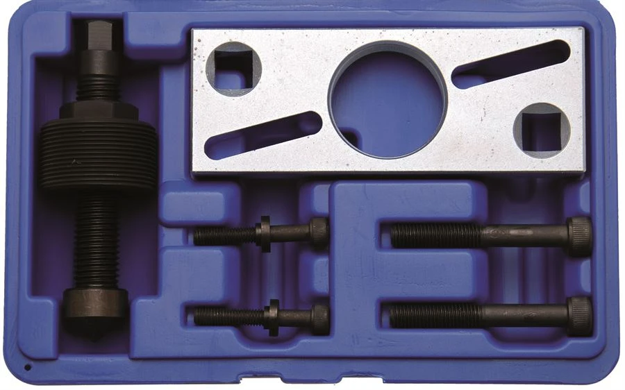 - ermöglicht ein Abziehen der Riemenscheibe beigleichzeitigem Gegenhalten, dadurch wird ein Verdrehen der Kurbelwelle verhindert