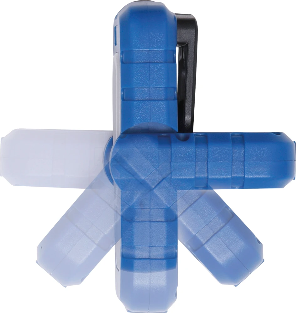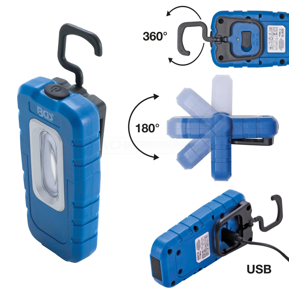 - 1 herausklappbarer und um 360° schwenkbarer Haken an der Gehäuserückseite