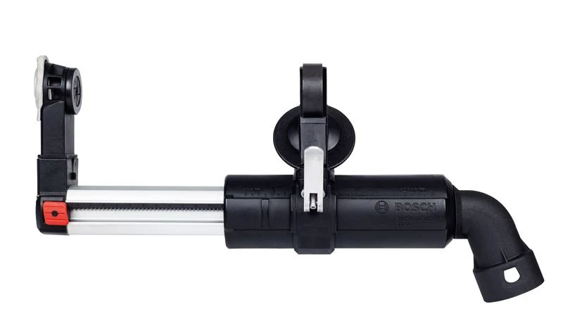 Absaugvorrichtung für GDE 16 Plus. Fast staubfreies Bohren mit SDS-plus. Für eine saubere Arbeit: Kaum noch nachträgliche Reinigungsarbeiten. Einfache Handhabung: Anschluss an SDS-plus-Hammer und Staubsauger mit einem Klick. Funktioniert mit allen 2- und 3-kg-Bosch-SDS-plus-Hämmern mit 50 mm Spannhals. Präzises Arbeiten durch robuste Alu-Teleskopschiene. Maximale Flexibilität: Geeignet für Rechts- und Linkshänder. Bei Bedarf abnehmbar. Geeignet auch für Hohlbohrkronen bis zu 82 mm Durchmesser. Perfekt abgestimmt auf das Bosch Click und Clean System (direkter Saugeranschluss möglich).