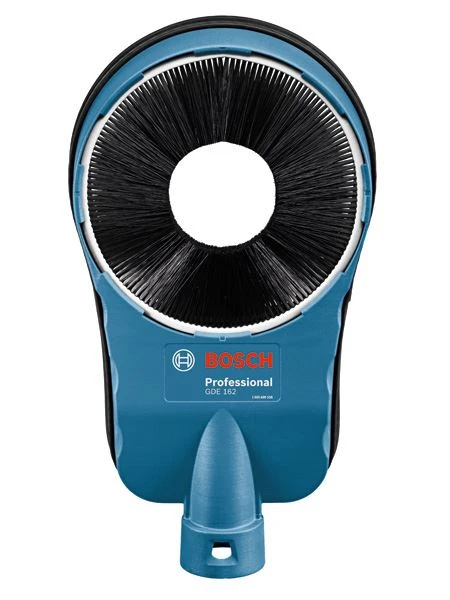 Absaugvorrichtung für verschiedene Bohrmaschinen GDE 162. Die praktische und universelle Staubabsaugung für Hohlbohrkronen. Für eine saubere Arbeit: weniger nachträgliche Reinigungsarbeiten. Einfache Handhabung: Anschließen an einen Staubsauger genügt. Geräteunabhängig: Funktioniert mit allen bohrenden Maschinen. Keine Montage an der Maschine erforderlich, kein zusätzliches Gewicht an der Maschine. Perfekt abgestimmt auf das Bosch Click und Clean System (direkter Saugeranschluss möglich). Geeignet für Hohlbohrkronen bis zu 162 mm Durchmesser. Auch zur Absaugung bei Nass-Bohrungen sehr gut geeignet.