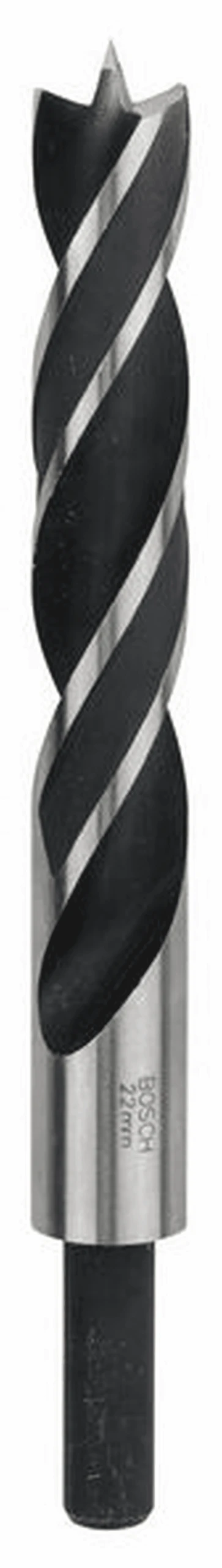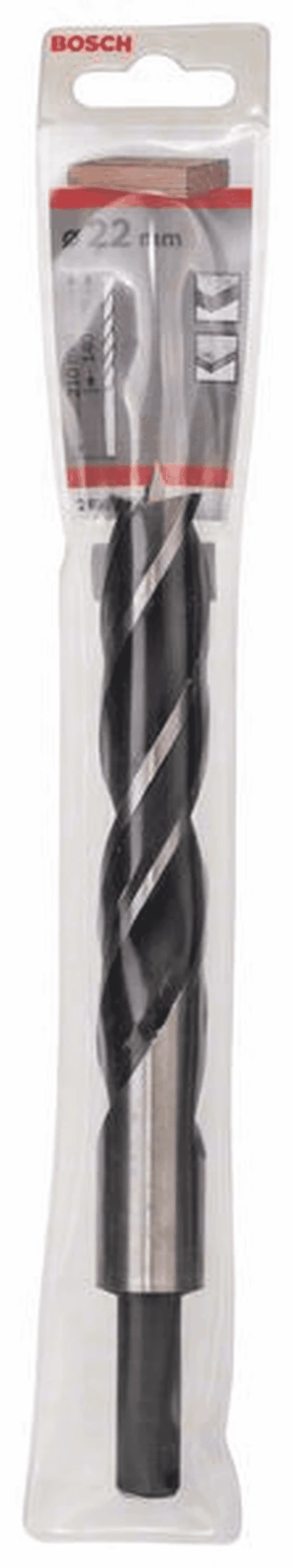 Holzspiralbohrer Standard. Durchmesser: 22 mm, Arbeitslänge: 140 mm, Gesamtlänge: 210 mm, Schaftdurchmesser: 13 mm. Der Holzspiralbohrer ist nach strenger Bosch-Werksnorm gefertigt. Extrem scharfes Bohrwerkzeug für präzise, ausrissfreie Bohrungen. Mit CBN-Schleifverfahren und kubisch-kristalliner Bornitrid-Schleifscheibe in voll gehärtetes Material präzise geschliffen. Geeignet für harte und weiche Hölzer. Bohrer mit Zentrierspitze und Schulterschneider. Bohrerfarbe: schwarz. Geschliffene Fase, zweispiralig.