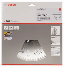 BOSCH Professional Kreissägeblatt Top Precision Best for Wood, 250 x 30 x 3,2 mm, 60 2608642112