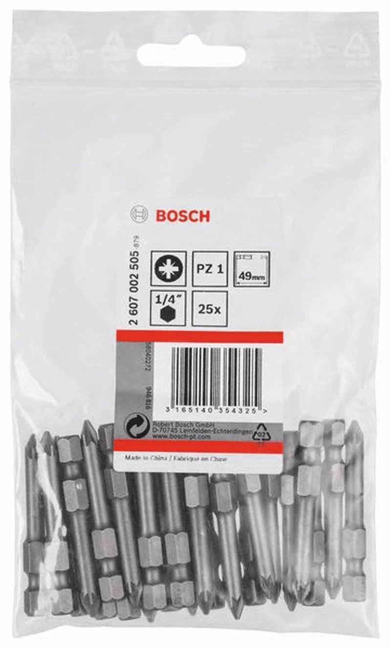 BOSCH Professional Schrauberbit Extra-Hart, PZ 1, 49 mm, 25er-Pack 2607002505
