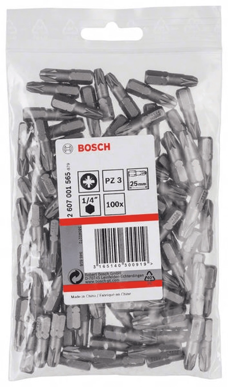 BOSCH Professional Schrauberbit Extra-Hart, PZ 3, 25 mm, 100er-Pack 2607001565