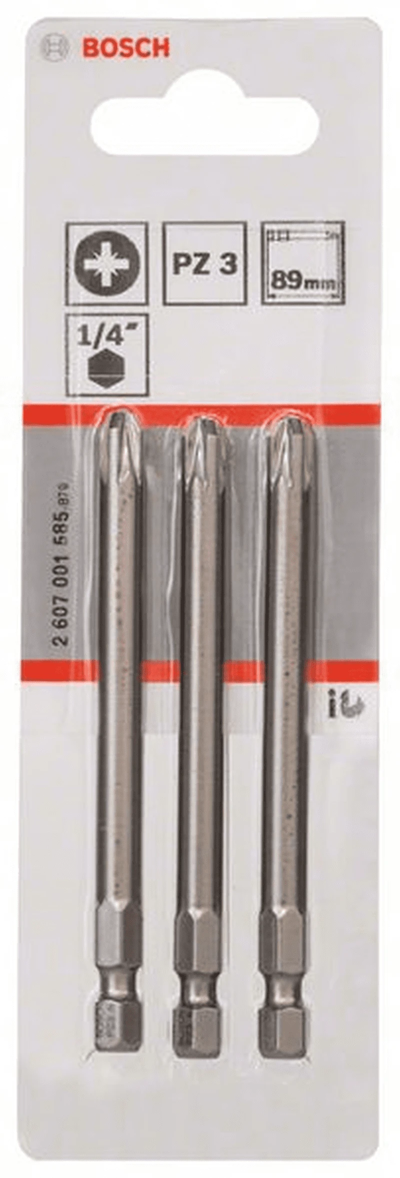 BOSCH Professional Schrauberbit Extra-Hart, PZ 3, 89 mm, 3er-Pack 2607001585