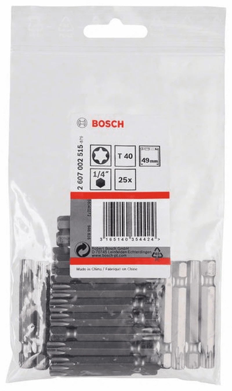 BOSCH Professional Schrauberbit Extra-Hart, T40, 49 mm, 25er-Pack 2607002515