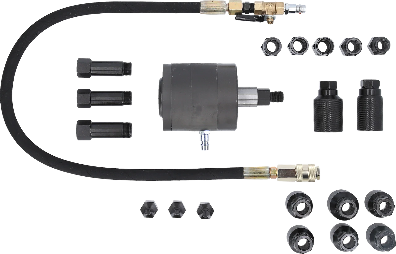 besteht aus insgesamt 21 Teilen, einschlieĂźlich 16 Adaptern, die fĂĽr nahezu alle Injektoren geeignet sind. Die Schlagwirkung des Ausziehers ist enorm hoch und daher ideal zum Ausbau