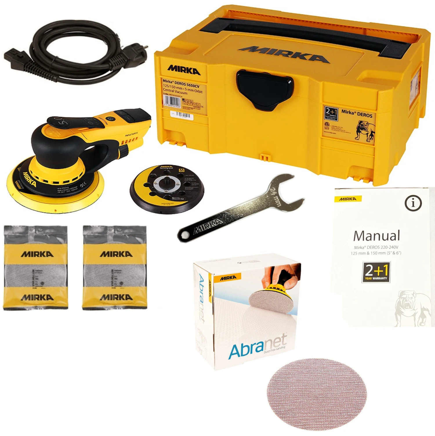 Exzenterschleifer Elektro Mirka DEROS 5650CV Set + 50 Abranet Scheiben & Case Gratis
