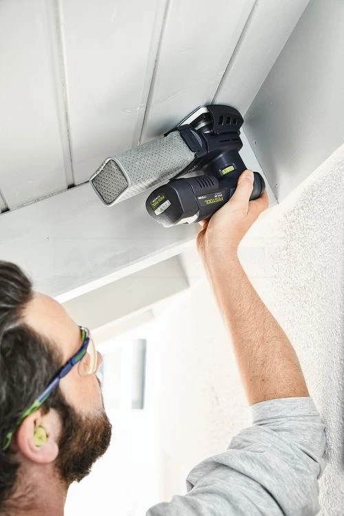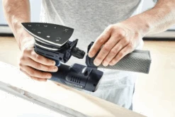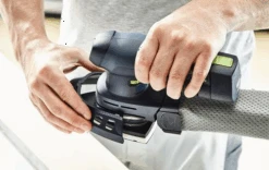 - Mit plug it-Netzadapter als Schleifmaschine mit unbegrenzter Laufzeit im elektrischen Dauerbetrieb – ideal in Kombination mit einem Festool Absaugmobil im Innenbereich