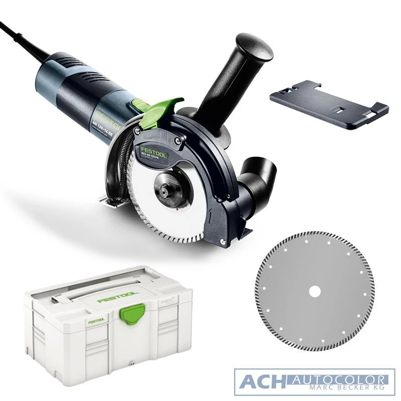 LieferumfangAbsaughaube DCC-AG 125 FH, Diamantscheibe ALL-D125 Standard, Tischplatte TP-DSC-AG 125 FH, Zusatzhandgriff VIBRASTOP, im SYSTAINER SYS 3 T-LOC