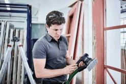 - Gesund und weniger Nacharbeit: In Kombination mit Absaugmobil oder Longlife-Staubfangbeutel und aufsteckbarem PROTECTOR für schonendes Schleifen entlang von Fensterflächen, Rahmen und Füllungen