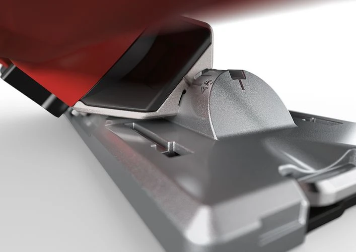+ Stabile Fußplatte mit abnehmbarem Kunststoffgleitschuh zum Schutz empfindlicher Oberflächen
