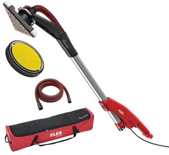 - Besonders bei großen Flächen oder längeren Arbeiten über Kopf profitiert der Anwender vom geringen Gewicht und der ausgewogenen Schwerpunktlage der FLEX Giraffe® GE 7. So wird unnötige körperliche Belastung vermieden.