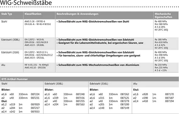 GYS 40 WIG Schweißstäbe Edelstahl 316 L Ø 2mm 330mm Blister 0,33kg 087279