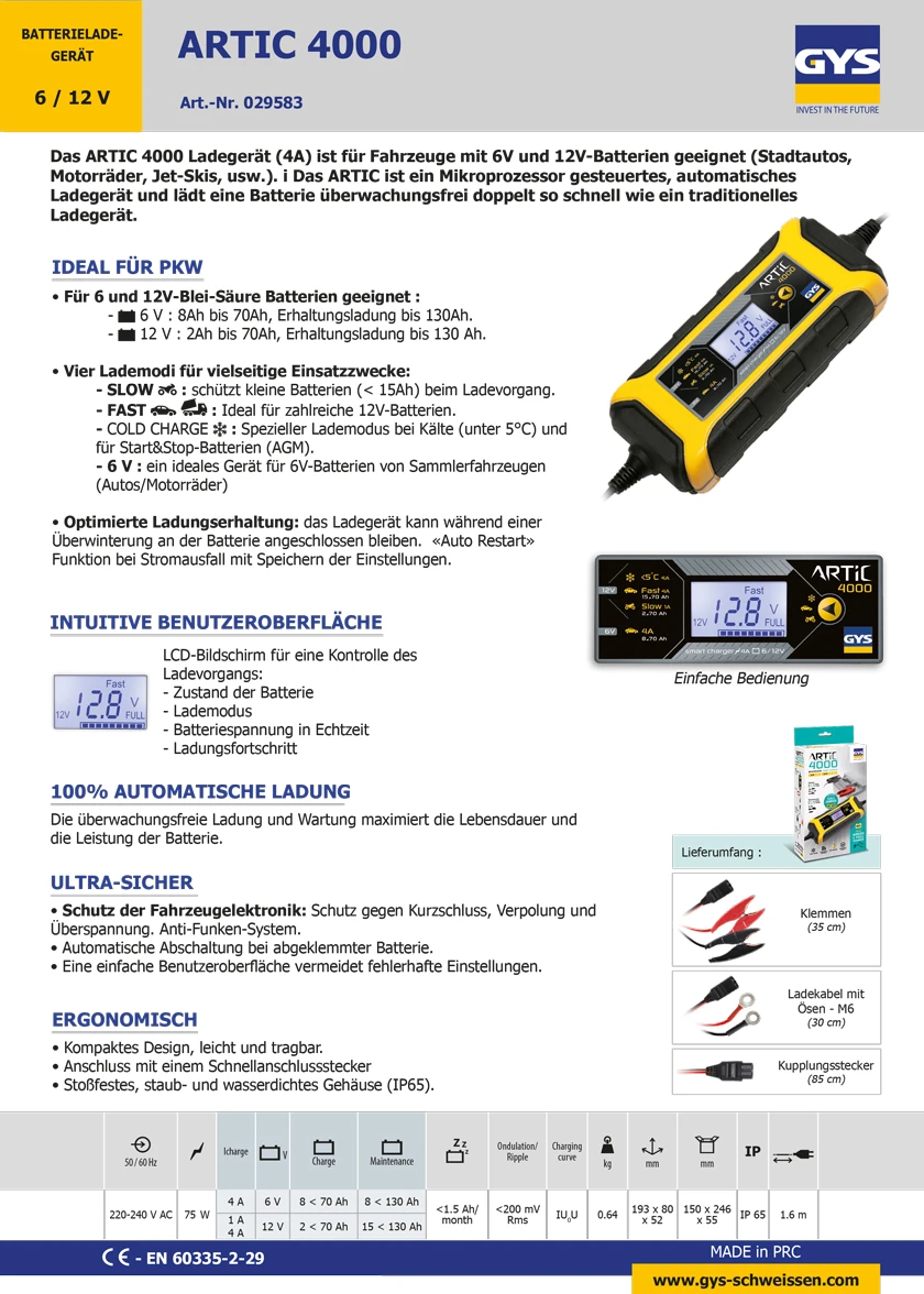 GYS ARTIC 4000 029583 automatisches Batterieladegerät 6 und 12V
