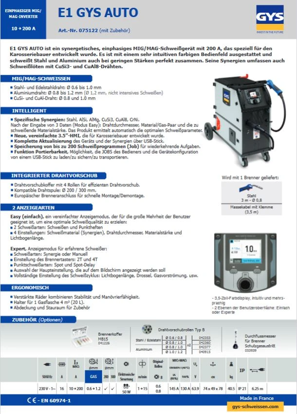 GYS E1 GYS AUTO Karosserie Multi Schweissanlage – 075122