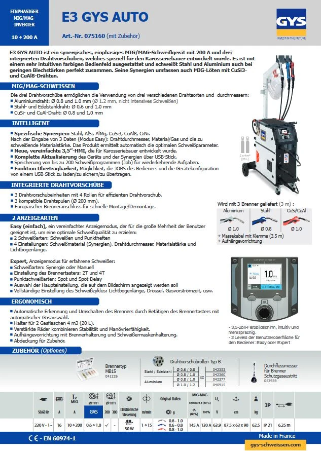GYS E3 GYS AUTO Karosserie Multi Schweissanlage im Promo-Set – D75160