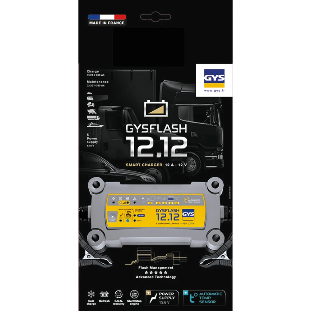 - Das GYSFLASH 12.12 ist zum Laden von 12V-Batterien von PKWs, Nutzfahzeugen, LKWs und Reisebussen geeignet.
