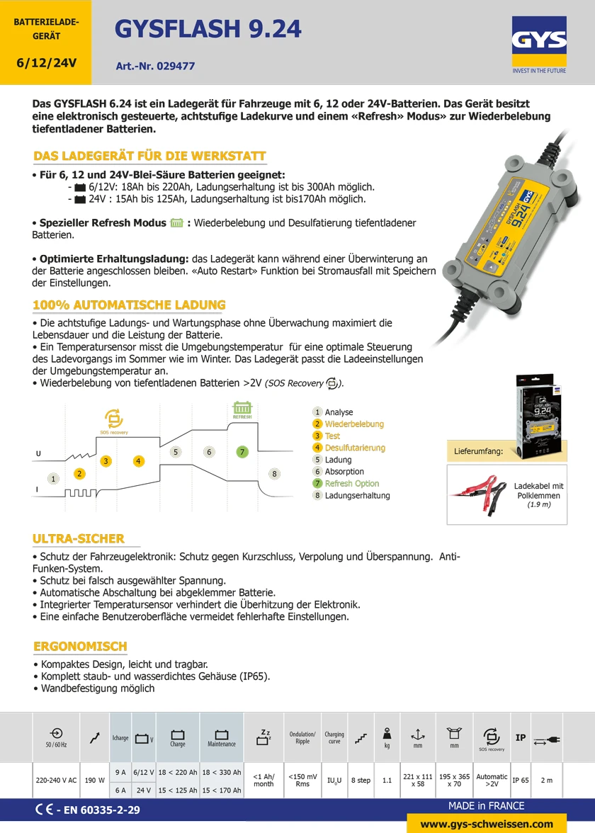 GYS GYSFLASH 9.24 9 24 029477 BatterieladegerÀt 6V 12V 24V Ladeerhaltung