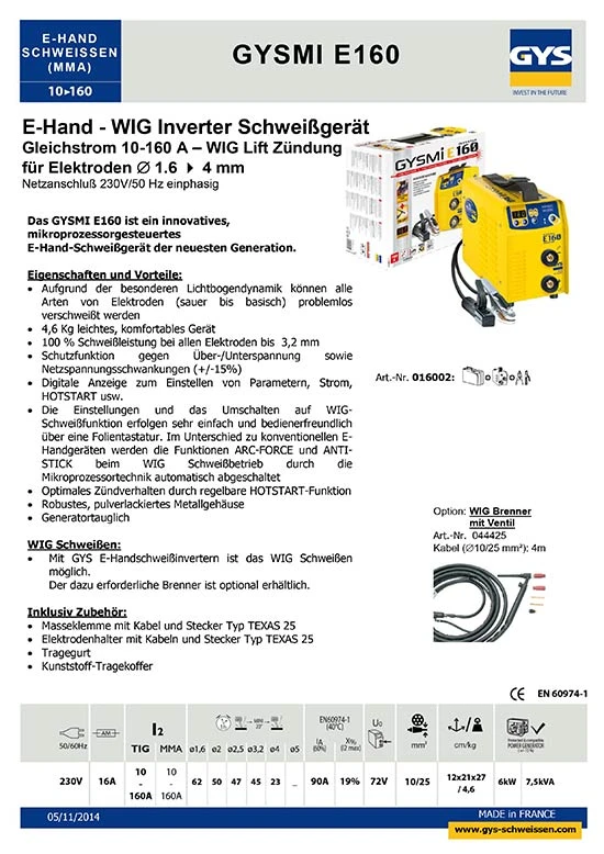 Nachfolgemodell: GYS GYSMI E163 E Hand MMA WIG Elektroden Schweißgerät 036635 Inverter E 163