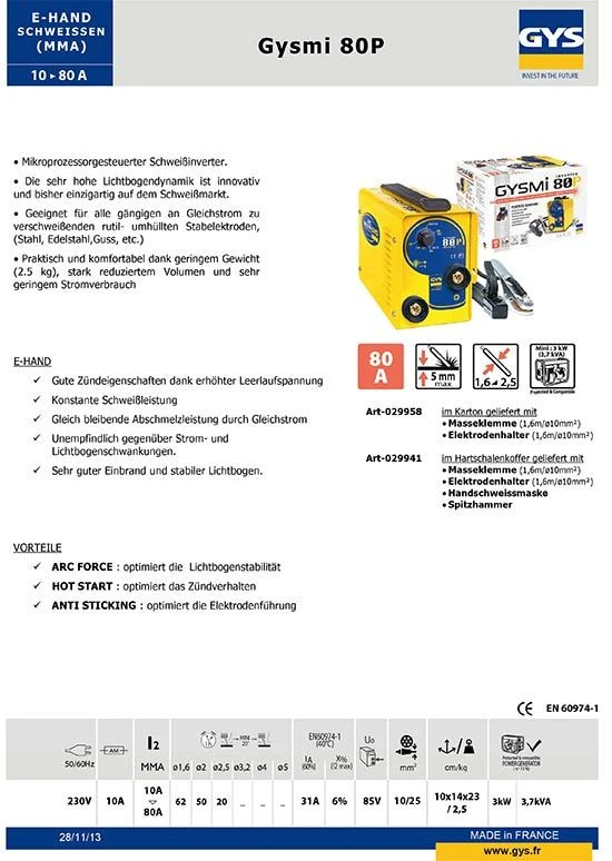 1x E Hand Elektroden Schweißgerät GYSMI 80 P im Karton