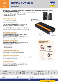 GYS NOMAD POWER 20 026629 Profi 12V Booster Powerbank Taschenlampe