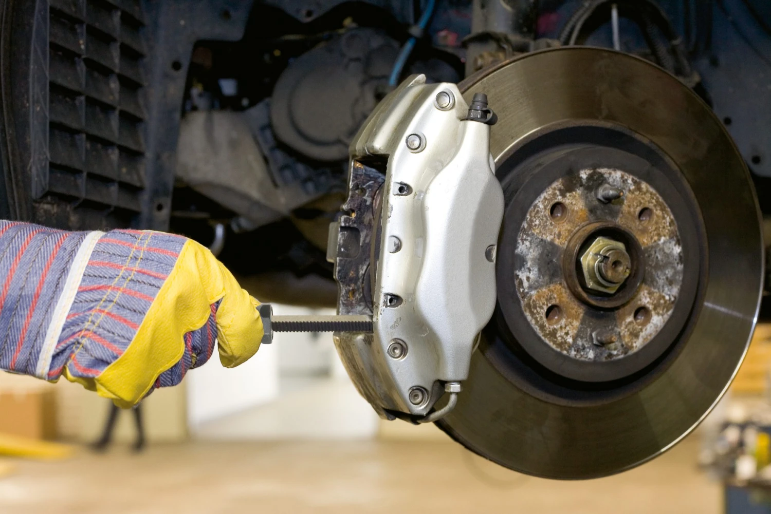 Entfernen von hartnäckigem Bremsstaub, Schmutz und Rost im Bremssattel