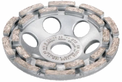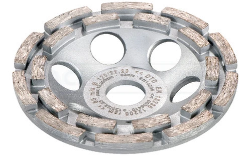 Doppelt belegter Diamantschleiftopf zum Abschleifen von dicken Betonschichten, zum Nivellieren von Beton, zur Bodenvorbereitung, zum Entfernen von Schlammhäuten und Schalungsnähten auf Beton, zum Abschleifen von hartem Zement-, Kalk-Zement-Putz, hartem Estrich, zum Nivellieren von Granit, Natursteinen und anderen sehr harten Materialien