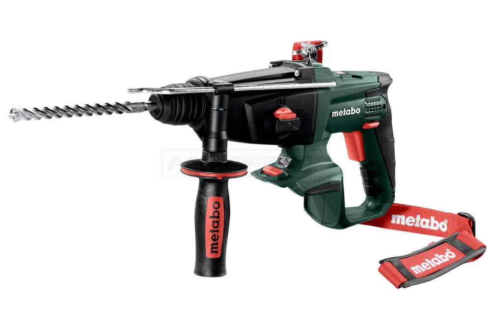 Hammerfutter für Werkzeuge mit SDS-plus-Einsteckende, gummierter Zusatzhandgriff, Bohrtiefenanschlag, Tragegurt, MetaLoc Koffer, ohne Akkupack, ohne Ladegerät