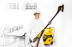 Dieser einzigartige Wand- und Deckenschleifer überzeugt mit nur 3,5 kg Gewicht und einem bürstenlosen Motor.