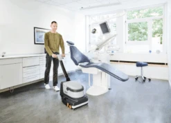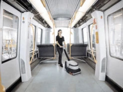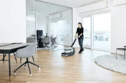 Die SC250 ist eine kompakte Scheuersaugmaschine zum schnellen und wirksamen Reinigen von Hartböden. Sie kommt in jede Ecke und reinigt gründlich in beiden Richtungen – auch unter Möbeln und Regalen. Sie ist eine leichte und produktive Maschine mit geringem Geräuschpegel, die sich – da batteriebetrieben – auch für Reinigungsarbeiten tagsüber eignet. Eine attraktive Wahl für Geschäfte, Schulen, Restaurants, Cafés, Bäckereien, Fastfoodketten, Hotels, Reinigungsfirmen uvm. Die Scheuersaugmaschine SC250 bietet höchste Produktivität, da sie gleichzeitig kehrt, scheuert und saugt, sowohl vorwärts als auch rückwärts. Die 34 cm breite zylindrische Bürste beseitigt wirkungsvoll Staubpartikel bis hin zu Grobschmutz. Die Reinigung kann vorwärts und rückwärts durchgeführt werden. Beim Reinigen können Sie den vorderen Saugfuß aus der Betriebsposition anheben, um größeren Grobschmutz aufzunehmen, ohne anhalten zu müssen. Mit ihren zwei verschiedenen Frischwassereinstellungen können Sie die Maschine stets optimal an die anstehende Reinigungsaufgabe anpassen. Diese zwei Bedienungsmethoden ermöglichen eine schnelle und effiziente Reinigung. Effektiv: Gleichzeitig kehren, scheuern und saugen.