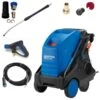 - Extra features; full stainless steel frame; high-pressure detergent injector; coin box, water brake tank, accessory storage kit Dry run/low water safety and inlet water safety kit.