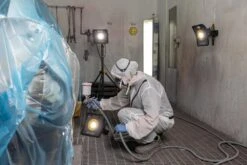 ExplosionsgeschĂĽtzte Arbeitsleuchte mit 10 Meter Kabel fĂĽr die Spritzkabine