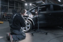 Das SCANGRIP FAHRGESTELL wurde fĂĽr die mobile Positionierung der Arbeitsleuchte in der Autoaufbereitungswerkstatt entwickelt.